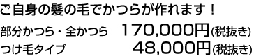 (自毛のみで作成する際は1回分では部分かつらしか作成ができません。)