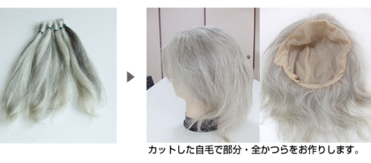 また全かつらであれば、数年伸ばした髪(20〜30センチ)をカットして 2〜3回分ほどためて頂けると作成が可能です。